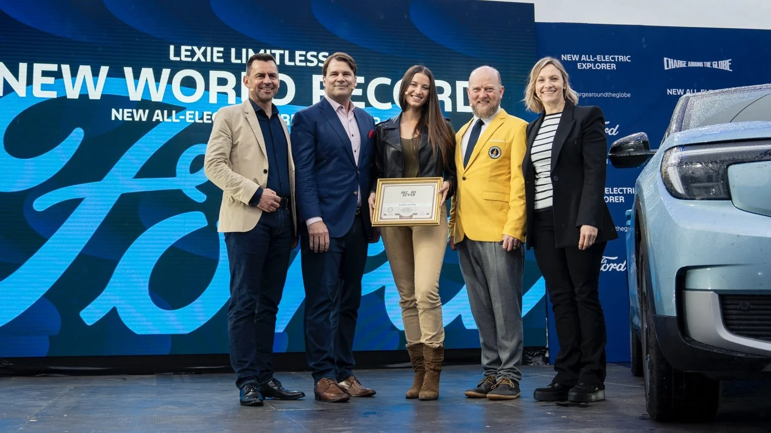 RecordSetter and Ford proudly celebrate Lexie Alford’s historic achievement of driving around the world in a Ford electric Explorer.